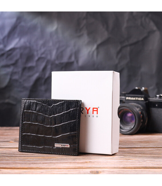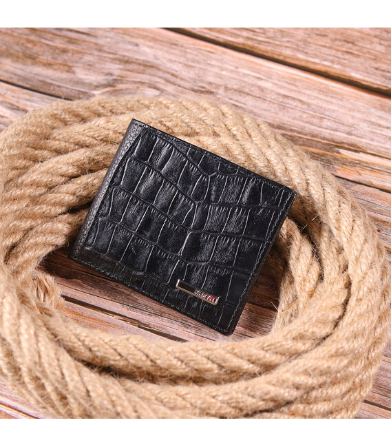 Детальніше Чоловічий затискач з монетницею з натуральної шкіри з тисненням під крокодила KARYA 21406 Чорний