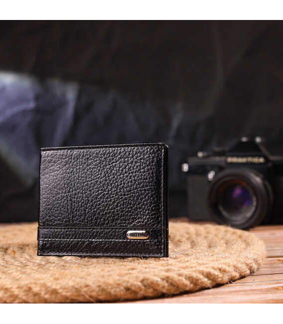 Практичний затиск із натуральної зернистої шкіри CANPELLINI 21518 Чорний