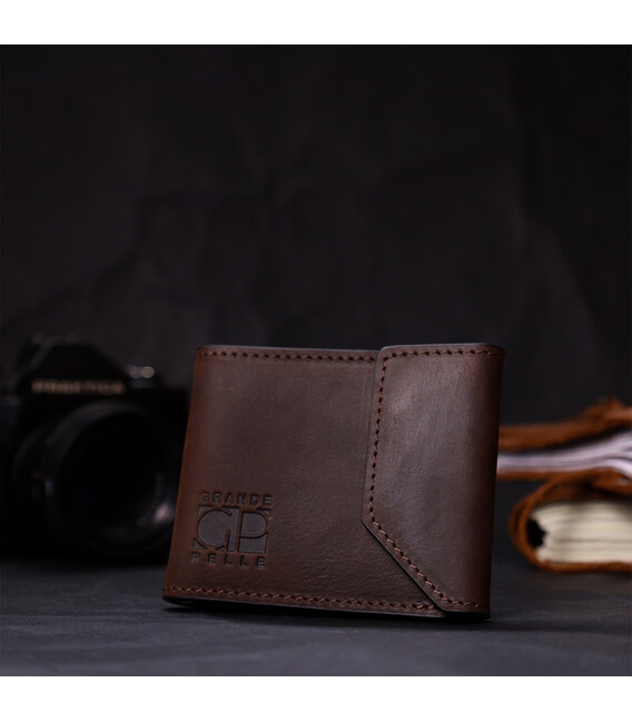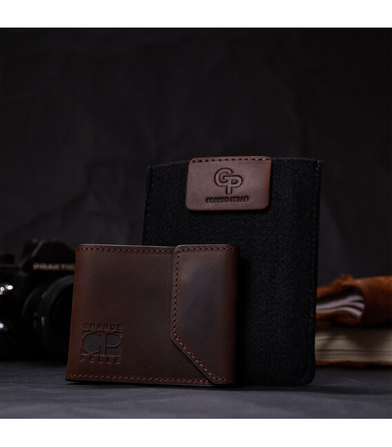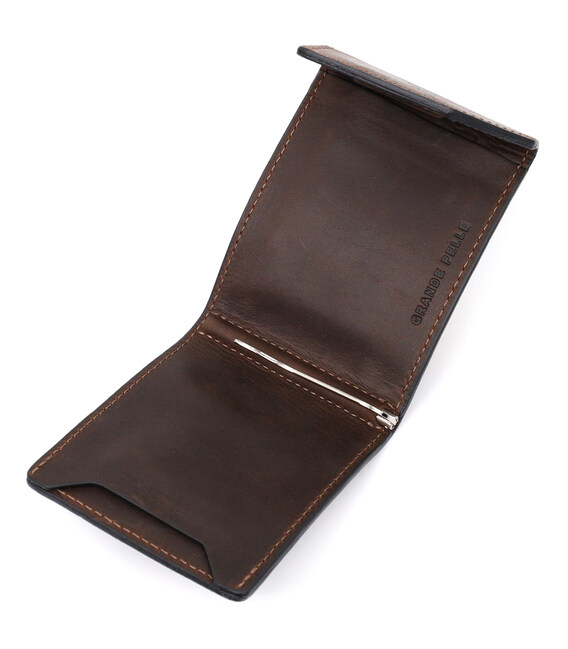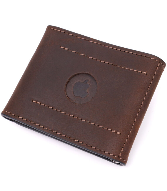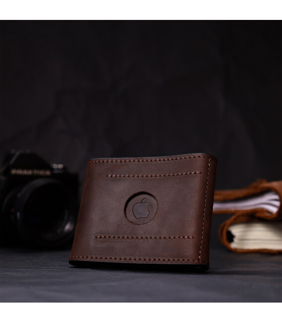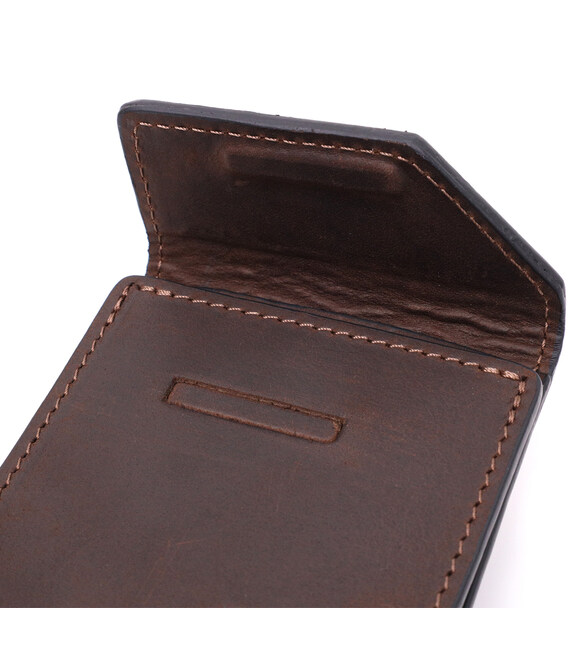 Сучасний шкіряний затискач ручної роботи із натуральної висококласної шкіри. На лицьовій стороні виріб має тиснений логотип виробника Grande Pelle. Аксесуар складається з двох відділень під картки та металевого якісного затиску. Крім зручного функціоналу фішкою цього картхолдера є тримач для смарт трекера Apple AirTag, це сучасний пристрій, що визначає місцезнаходження речі, до якої він прикріплений. Завдяки компактним розмірам аксесуара він чудово поміщається в кишеню чи сумку будь-якого розміру, що допоможе користувачам легко знайти втрачені чи забуті речі. Відмінний аксесуар для сучасної людини. Увага, смарт трекер Apple AirTag не входить у комплект з аксесуаром!
