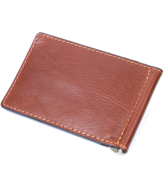 Надійний шкіряний затискач для грошей GRANDE PELLE 11668 Коричневий