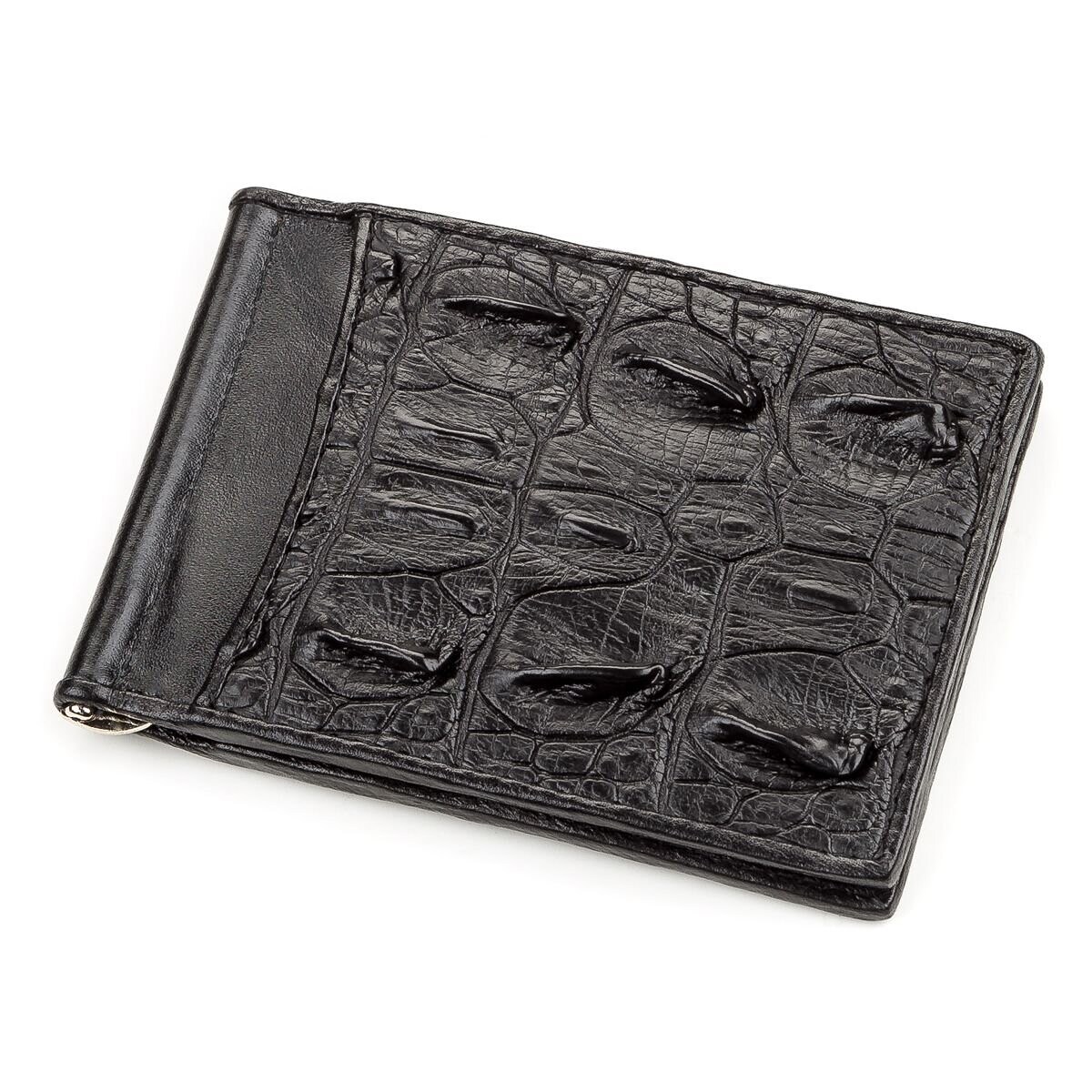 Цікавий затискач, з натуральної шкіри крокодила, який пошитий з фактурної хвостової частини шкіри. Аксесуар обшитий гладкою шкірою під колір портмоне. Вироби зі шкіри крокодила завжди вважалися великою розкішшю, так як в світі не так вже й багато компаній, які займаються виробленням такої шкіри, оскільки цей процес дійсно надзвичайно трудомісткий.