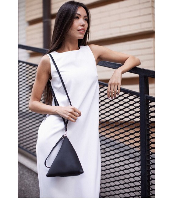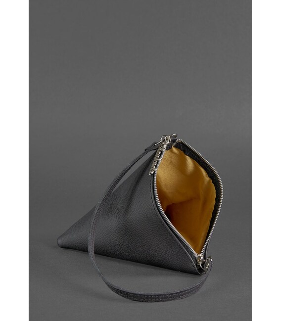 Елегантна чорна сумочка у формі піраміди стане відмінним додатком вечірнього образу. Такий аксесуар вигідно підкреслить індивідуальний стиль і ідеально підійде для нічних прогулянок або вечірок.