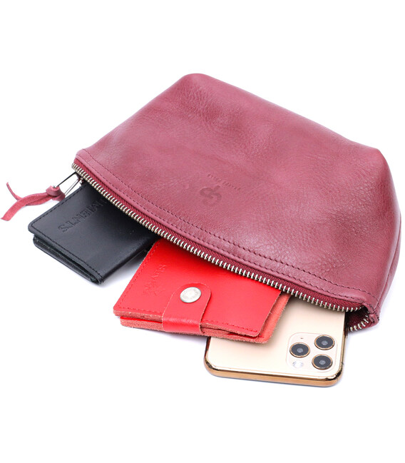 Зручна жіноча шкіряна косметичка GRANDE PELLE 16792 Бордовий