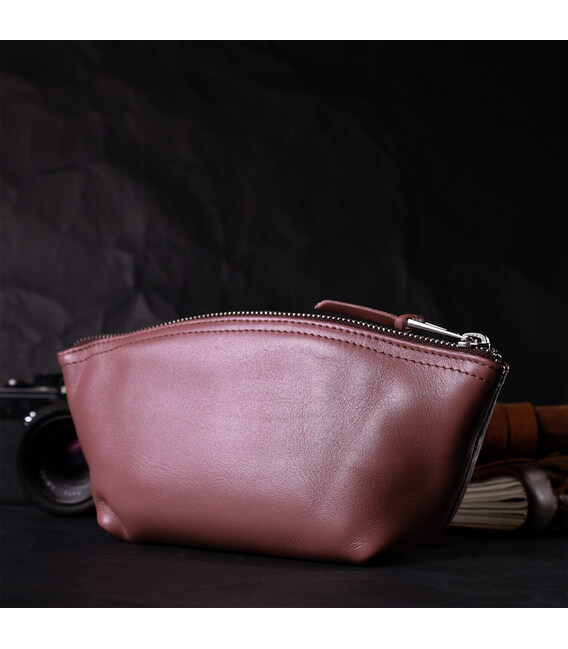 Красива жіноча косметичка з натуральної шкіри, яка стійка до зношування, має гарний колір і приємна на дотик. Усередині є невелика кишенька для дзеркальця, що йде в комплекті та має шкіряну оправу. Закривається виріб на зручну та надійну блискавку. Виріб повністю шкіряний, без підкладки, що робить його якіснішим та презентабельнішим. Шкіряна косметичка стане чудовим подарунком для жінки на будь-яке свято.
