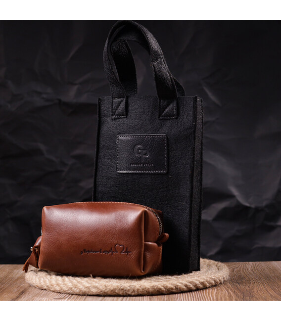 Найзручніша чоловіча косметичка з натуральної гладкої шкіри, з патріотичним тисненням на лицьовій стороні “З Україною в серці”. Аксесуар призначений для зберігання найнеобхідніших дрібниць, які можуть стати в нагоді будь-де. без особливого дискомфорту, аксесуар можна переносити в руці за спеціальну ручку, упакована дана косметичка в красиву фетрову сумочку.