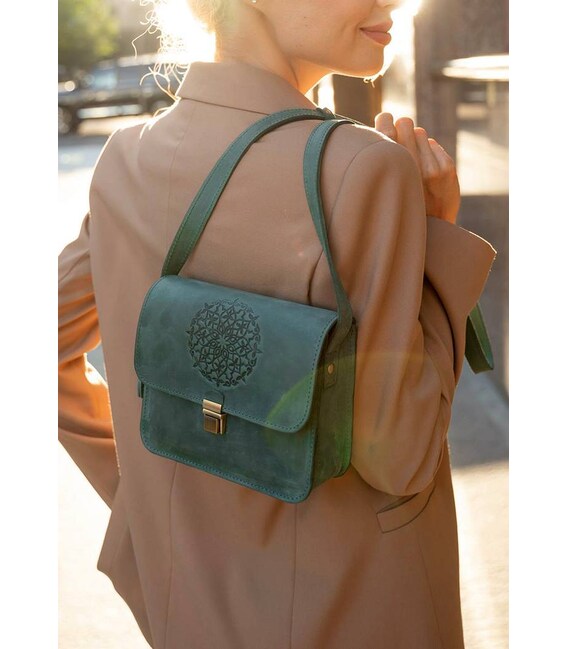 Зелена шкіряна сумка Лілу буде відмінно поєднуватися з зеленим шкіряним кард-кейсом 3.0 з мандалою , а також в каталозі є від особистий Шкіряний жіночий тревел-кейс 3.0 зелений з мандалою