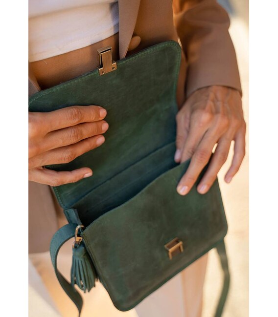 Шкіряна жіноча бохо-сумка Лілу зелена Crazy Horse