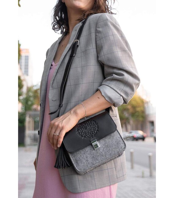 Фетрова жіноча бохо-сумка Лілу з шкіряними чорними вставками