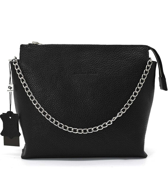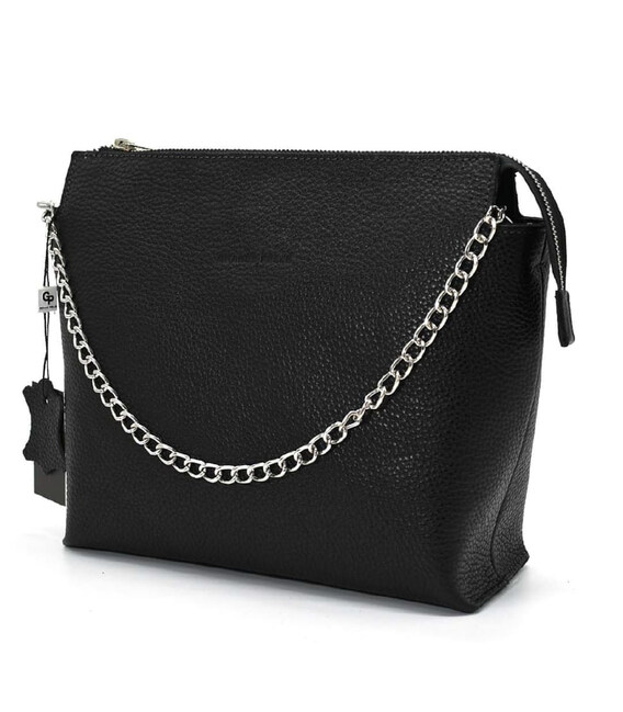 Сумка жіноча через плече із стильним ремінцем 746710 Grande Pelle чорний флотар. Розміри сумки 23 х 25.5 х 9см