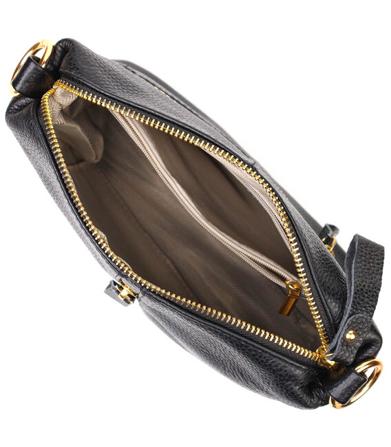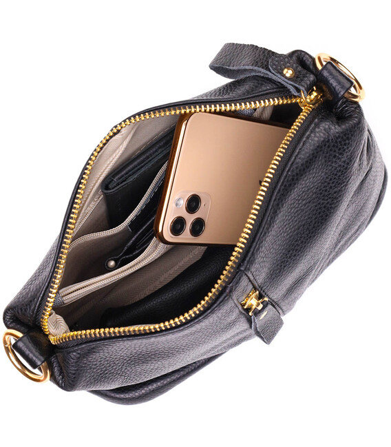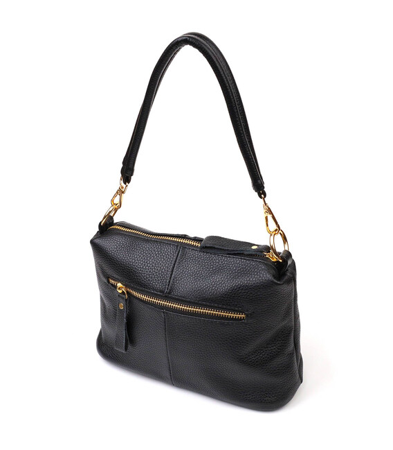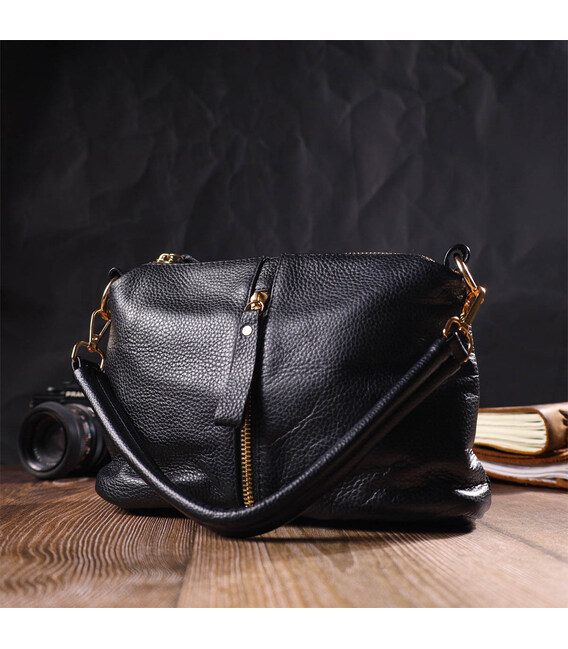 Стильна жіноча сумочка із натуральної м'якої шкіри. Виріб дуже зручний, можна носити на плечі, через плече та в руці. Модель доповнена фурнітурою кольору золота. Аксесуар має одне основне відділення в якому три кишеньки - дві на блискавці та одна відкритого типу, а також кишеню на блискавці зовні на тильній стороні та вертикальну кишеню-обман на лицьовій стороні. Модель закривається на блискавку. Ідеальний варіант для будь-якої дівчини на будь-який сезон.