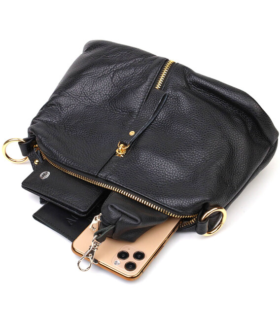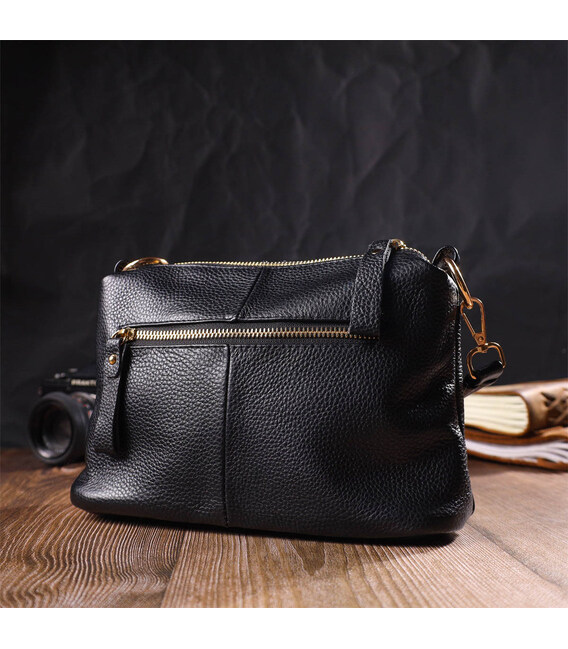 Детальніше Цікава сумка через плече з натуральної шкіри 22135 Vintage Чорна
