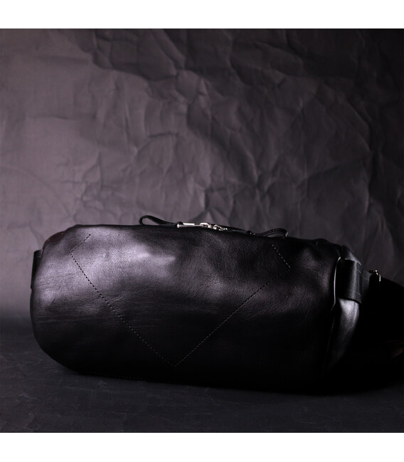 Цікава чоловіча сумка через плече нестандартного дизайну, яка є дуже модною на сьогоднішній день. Виконана з міцної та зносостійкої натуральної шкіри. Колір чорний, фактура гладка та глянсова. Фурнітура срібного кольору, регульований плечовий ремінь у поєднанні надійної ремінної стрічки та натуральної шкіри. Упакована ця сумка в гарний фірмовий чохол із ручками.