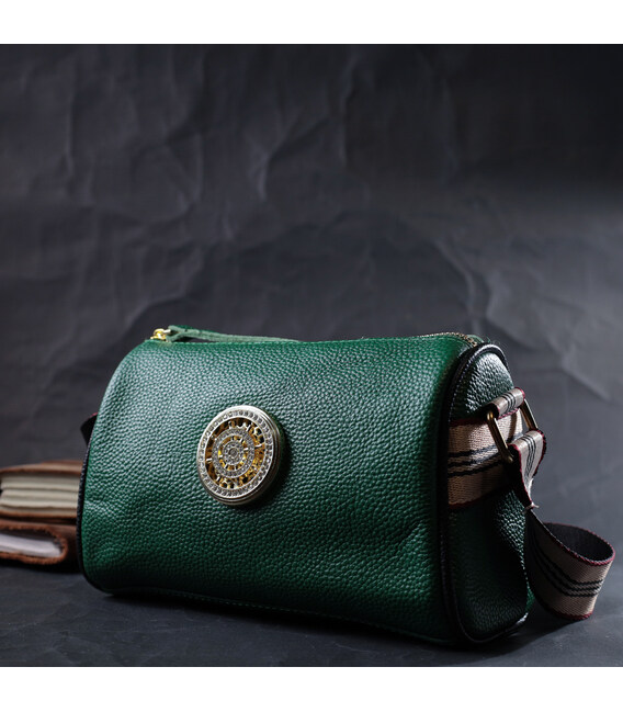 Детальніше Жіноча сумка з оригінальною прикрасою з натуральної шкіри Vintage 22261 Зелена