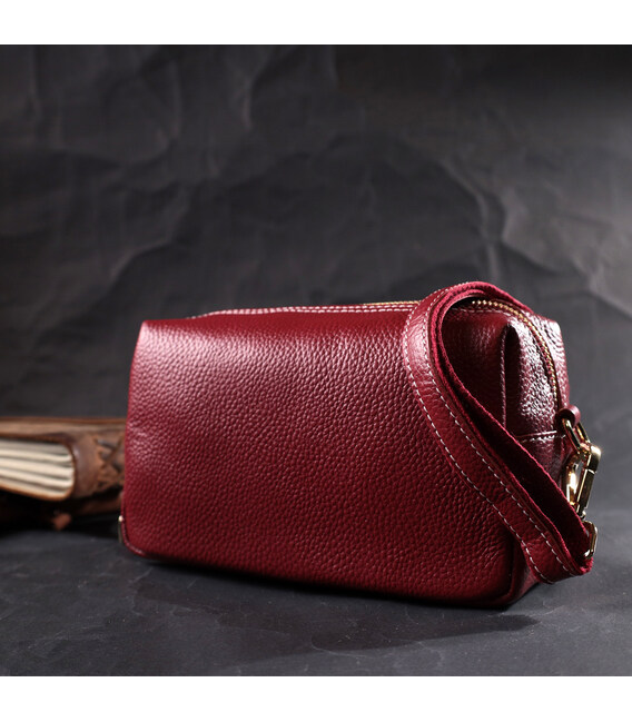 Детальніше Цікава жіноча сумка з двома ременями з натуральної шкіри Vintage 22274 Бордова