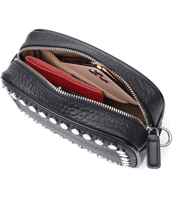 Стильна сумка декорована металевими кнопками з натуральної шкіри Vintage 22333 Чорна