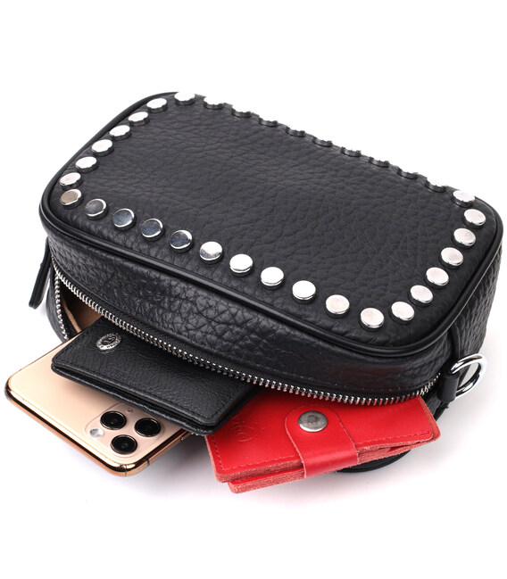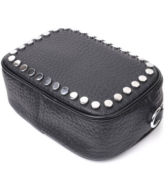 Детальніше Стильна сумка декорована металевими кнопками з натуральної шкіри Vintage 22333 Чорна