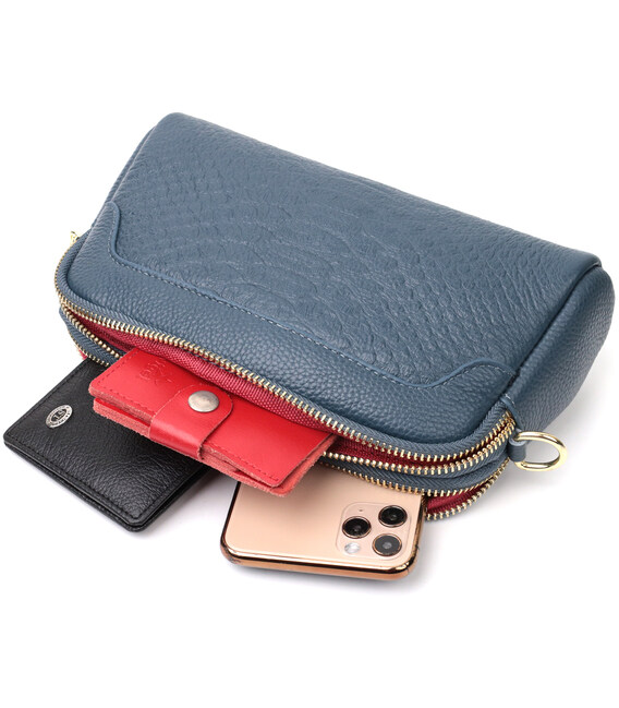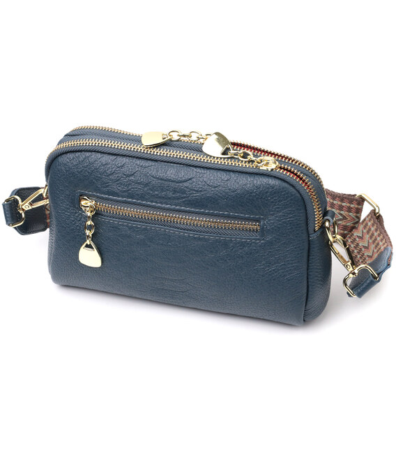Модна сумка на два відділення з натуральної шкіри Vintage 22355 Синя