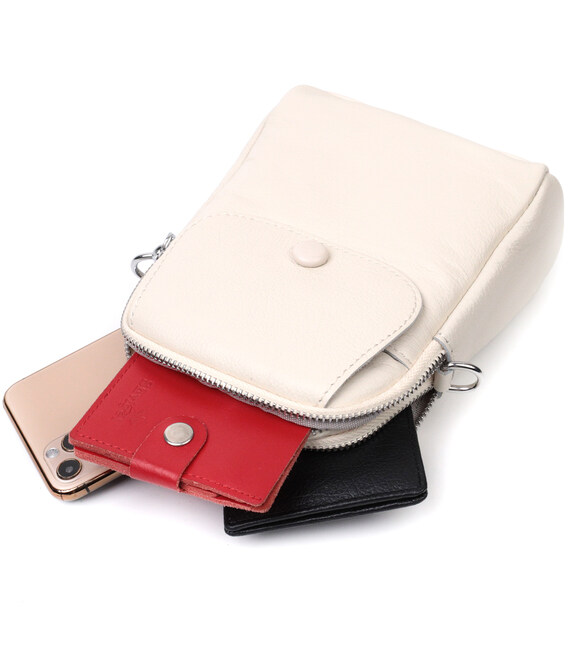 Жіноча невелика вертикальна сумка на два відділення з натуральної шкіри Vintage 22401 Біла