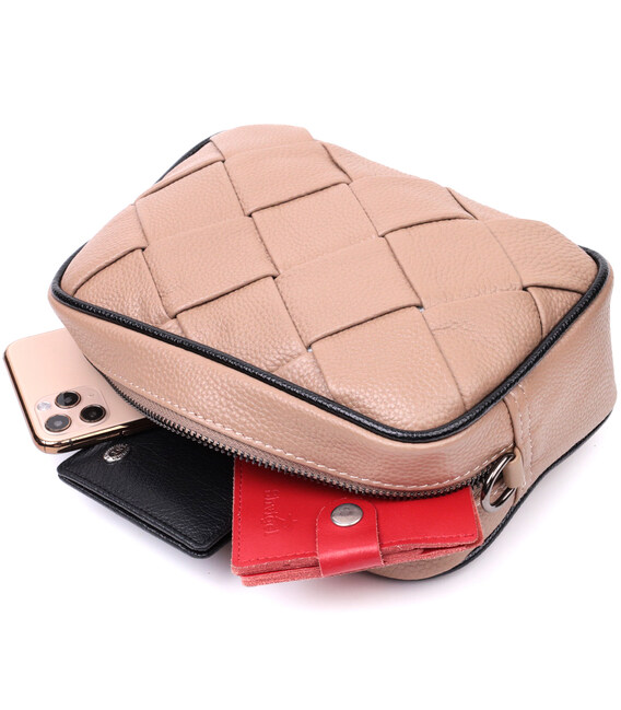 Детальніше Модна шкіряна сумка з плетіннями для стильних жінок Vintage 22409 Бежева