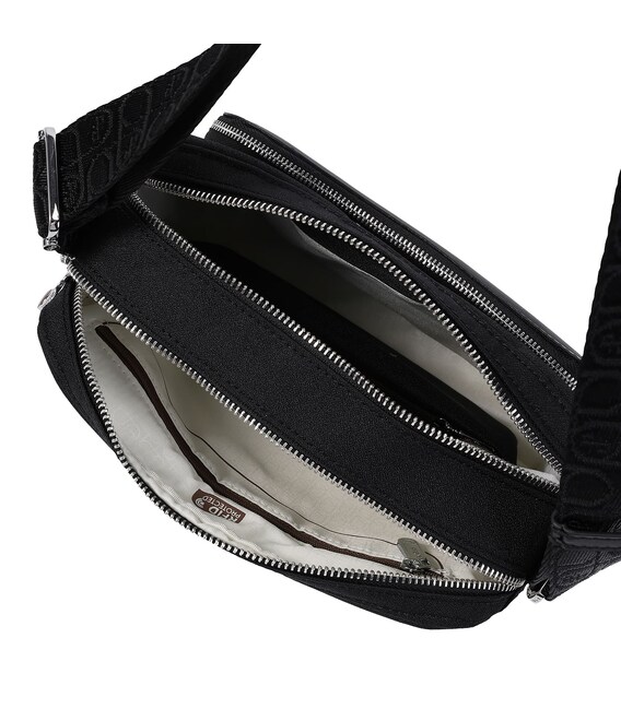 Всіма улюблена модель сумки-кросовер, середнього розміру. Оснащена двома основними відділами на блискавці, де в одному з присутня додаткова кишеня з RFID-захистом та гачок для ключів. Зовні, також, оснащена не великими кишенями, на передній та задній сторонах + вишукана знімна вішалка для ключів. Також, додатково, в комплекті знімна косметичка. Виріб виконаний зі 100% переробленого поліестеру PET (поліефірна тканина з перероблених пластикових пляшок).