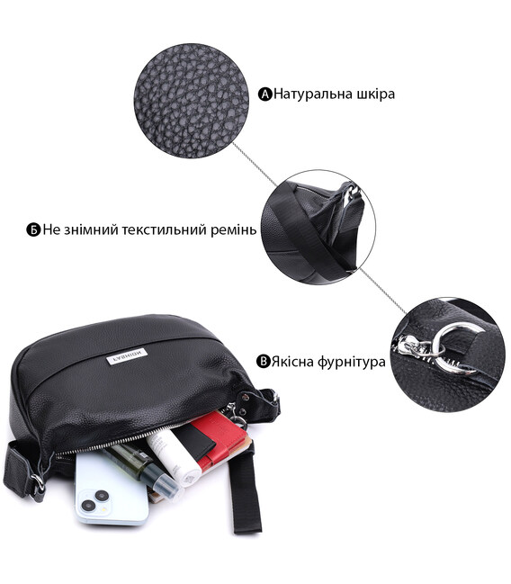 Детальніше Шкіряна сумка жіноча через плече з незвичайним бігунком брелоком Vintage 22615 Чорна