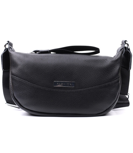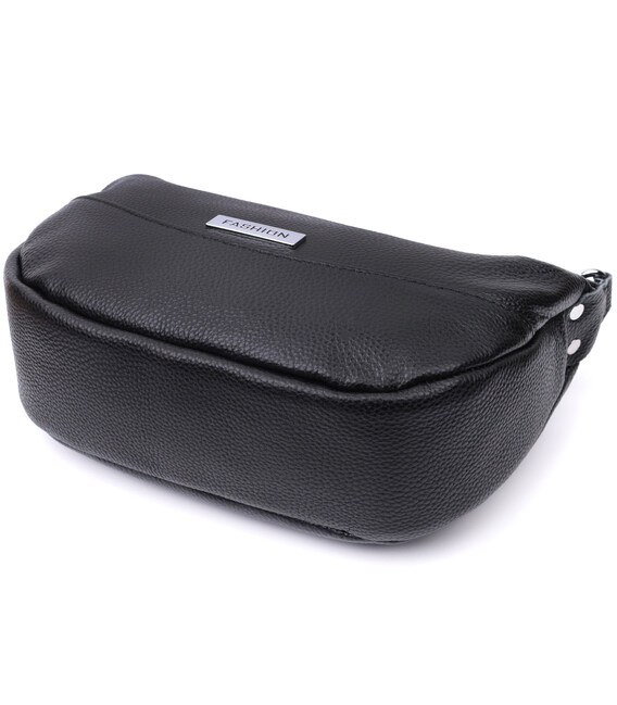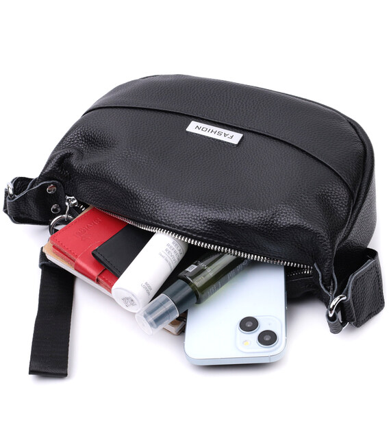 Шкіряна сумка жіноча через плече з незвичайним бігунком брелоком Vintage 22615 Чорна