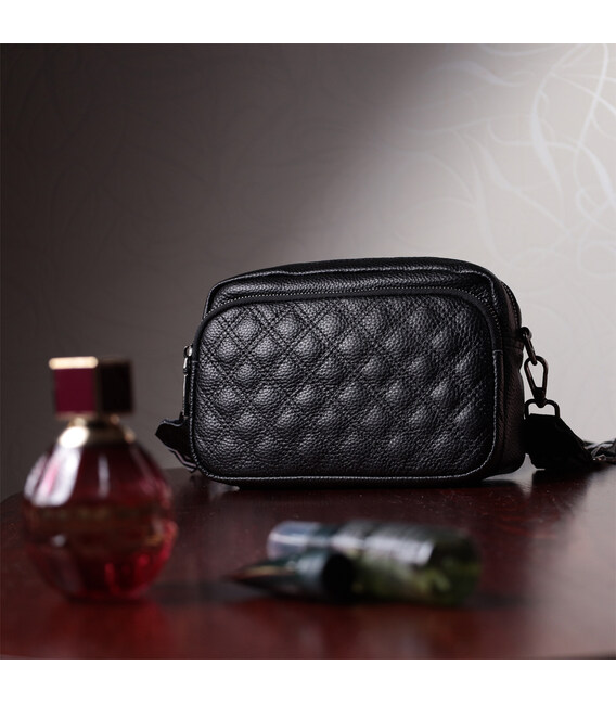 Жіноча сумка прошита ромбами на лицьовій стороні з натуральної шкіри Vintage 22634 Чорна
