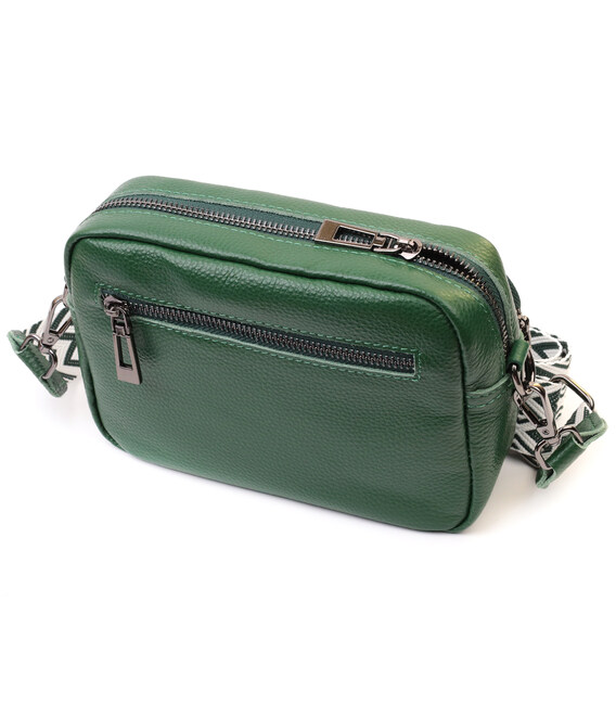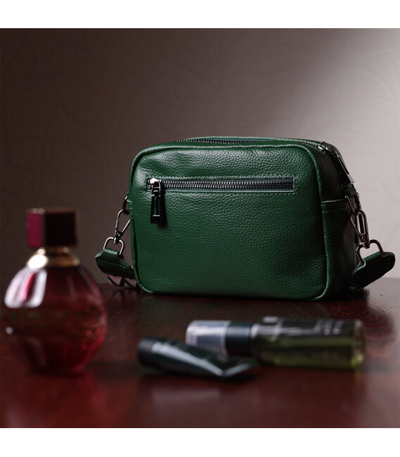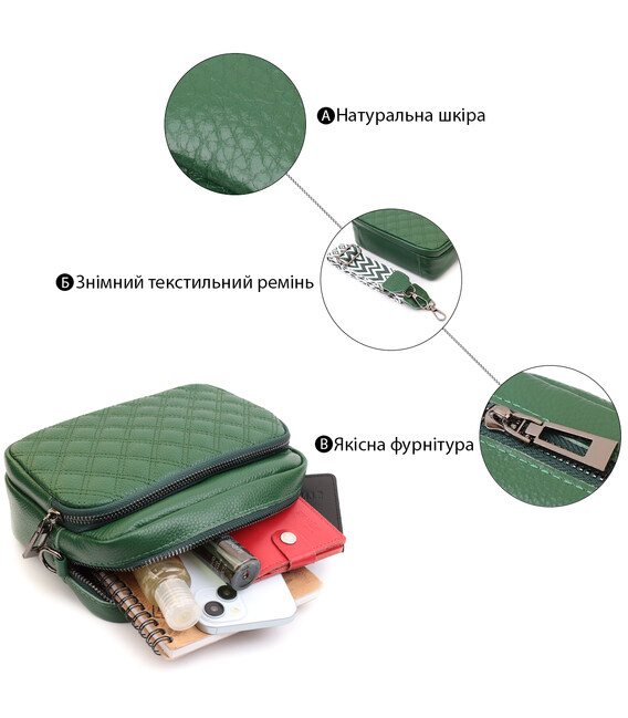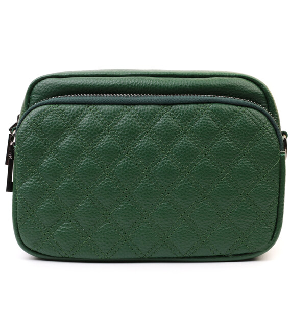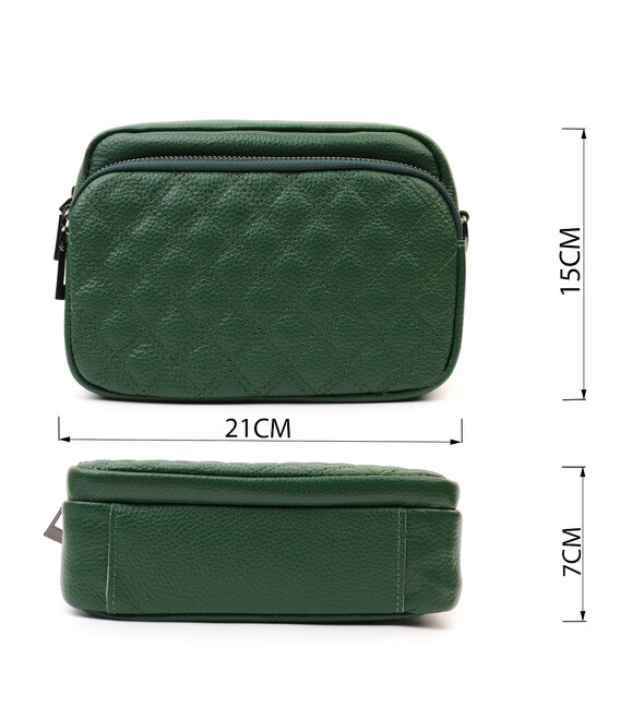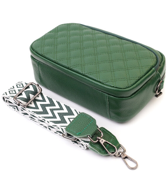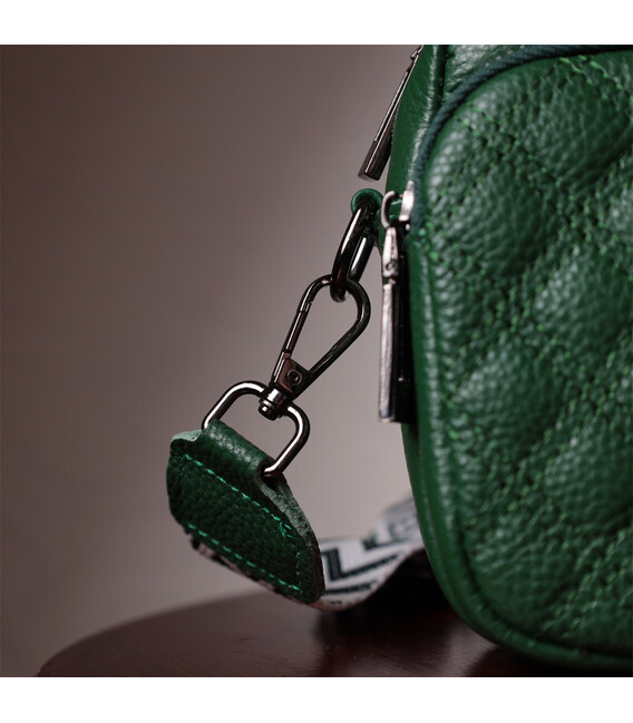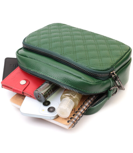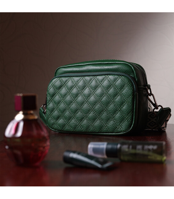 Невелика жіноча сумка прошита ромбами на лицьовій стороні з натуральної шкіри Vintage 22635 Зелена