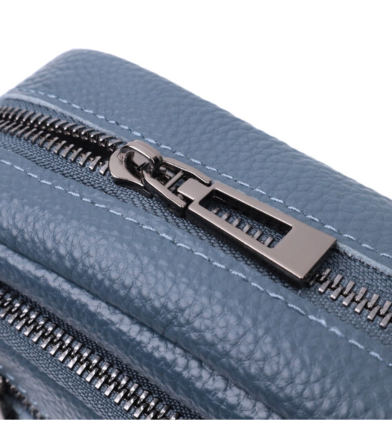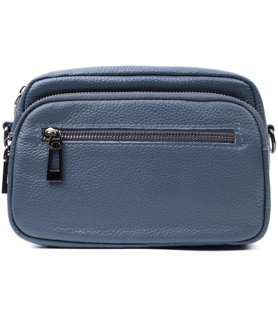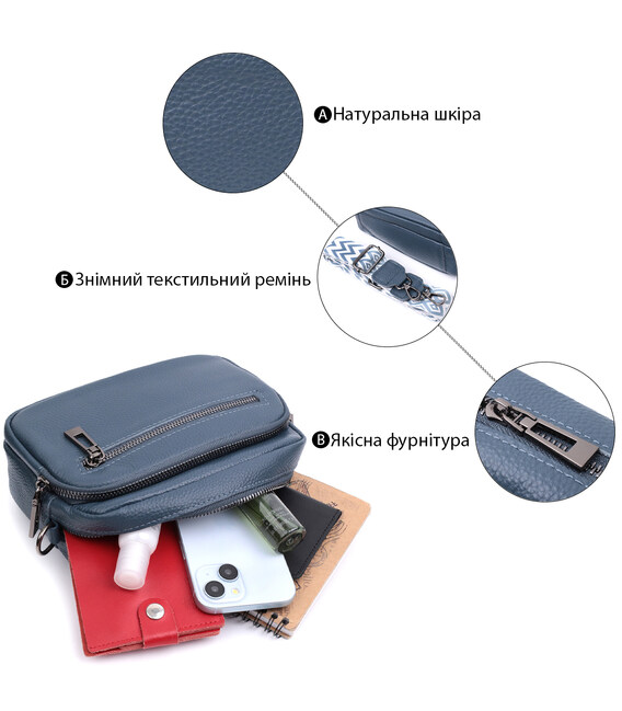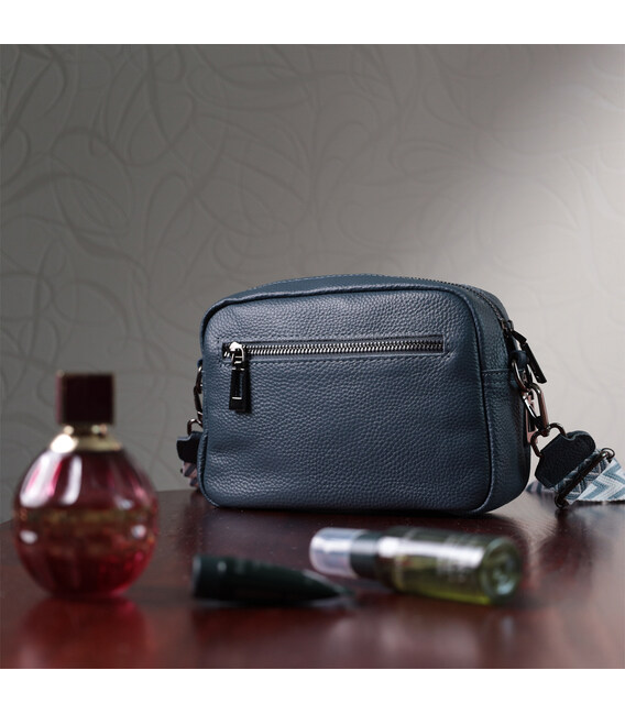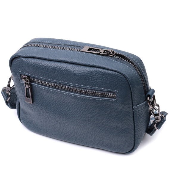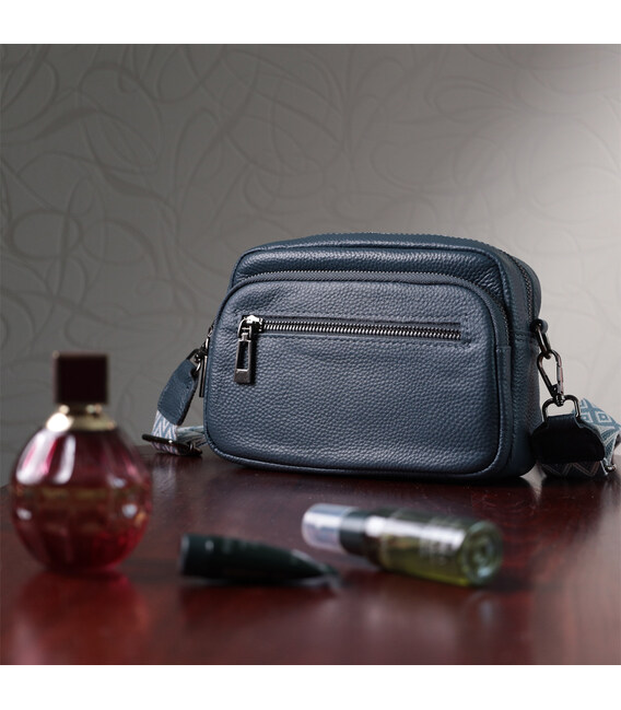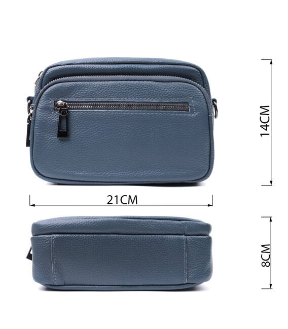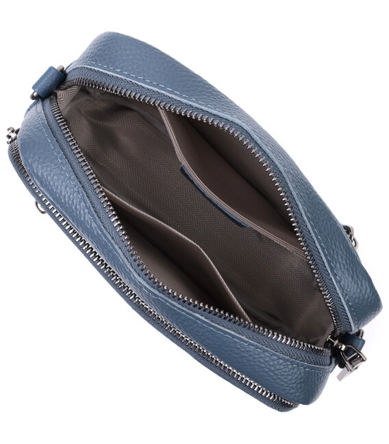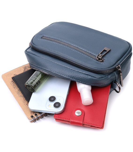 Невелика, але містка сумка для жінок з натуральної шкіри. Аксесуар складається з основного відділення, що закривається на блискавку, кишені відкритого типу та кишені на блискавці всередині та трьох кишень зовні. Носити сумку можна на плечі та через плече, також можна носити як клатч під рукою, для цього можна зняти текстильний ремінець.