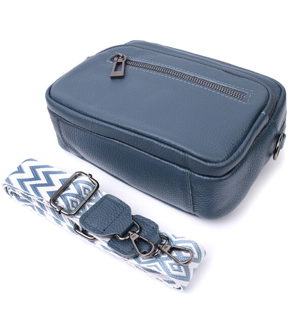 Детальніше Оригінальна сумка жіноча з накладною кишенею з натуральної шкіри Vintage 22641 Синя