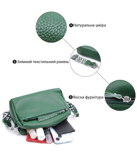 Детальніше Шкіряна сумка зі стильним бігунком Vintage 22651 Зелена