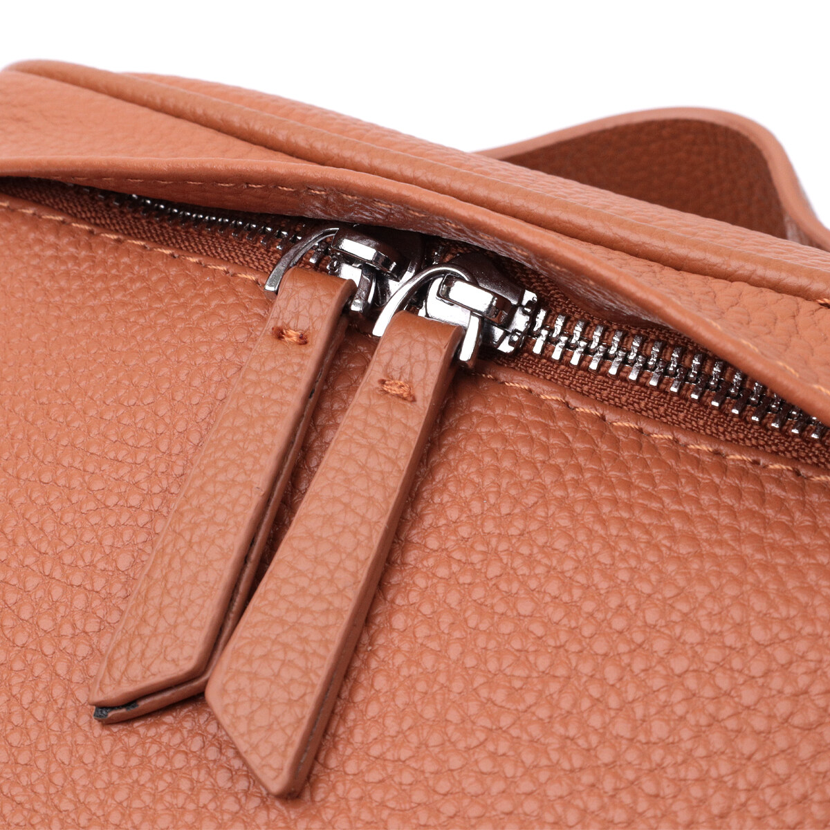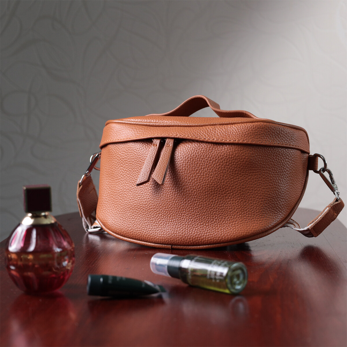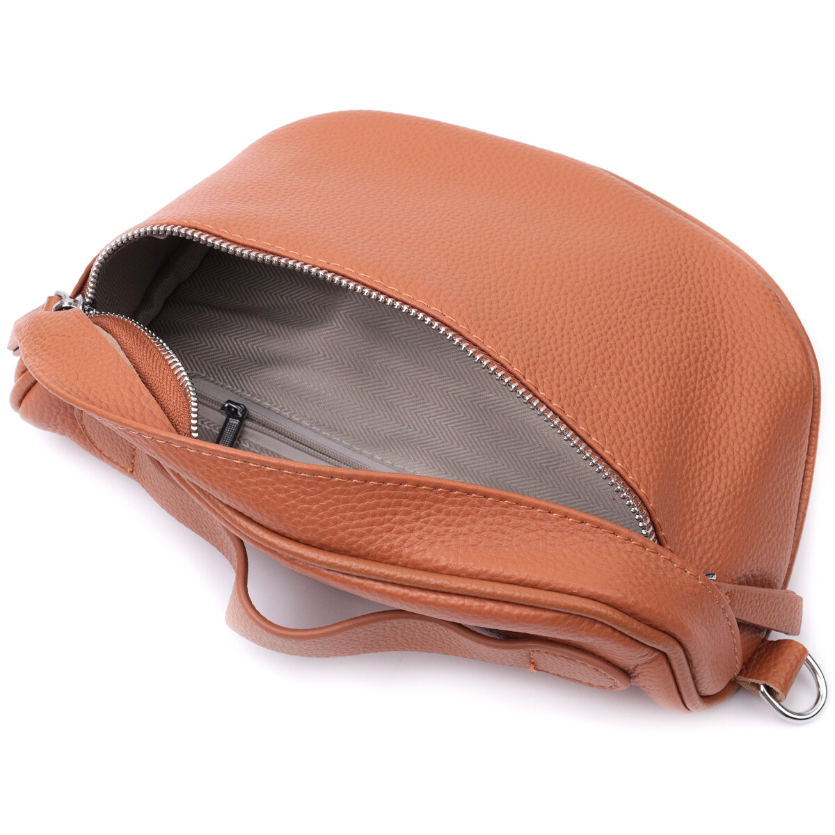 Практична та актуальна цього сезону сумка через плече з натуральної шкіри. Аксесуар складається з основного відділення, що закривається на блискавку, кишені на блискавці та кишені відкритого типу усередині. Носити сумку можна на плечі, через плече, а також в руках для цього є текстильний ремінь, що знімається, і шкіряна ручка.