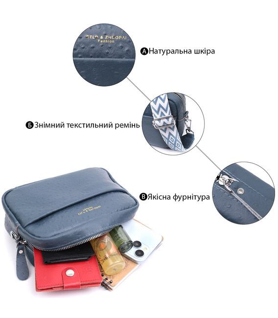 Детальніше Цікава сумка для жінок із фактурної натуральної шкіри Vintage 22661 Синя