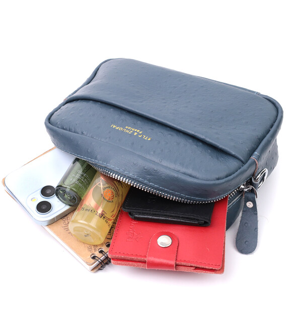 Цікава сумка для жінок із фактурної натуральної шкіри Vintage 22661 Синя