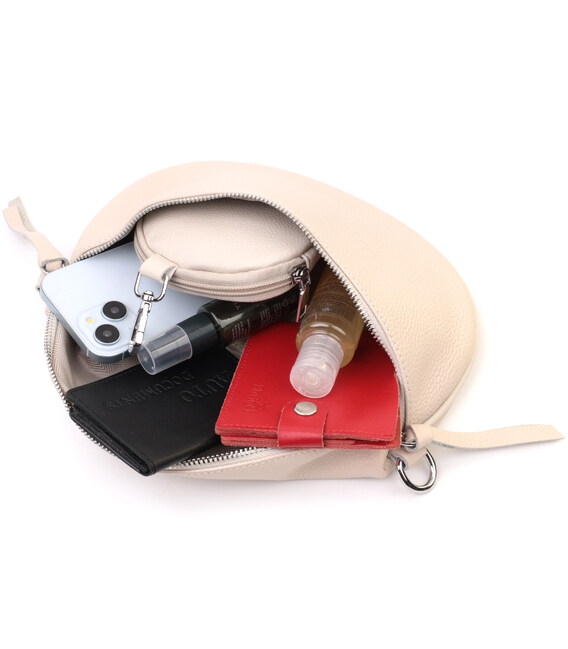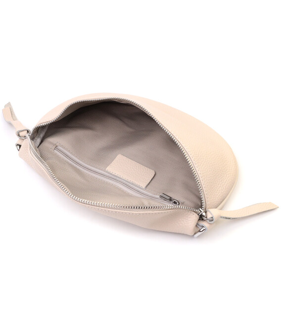 Зручна сумка через плече з натуральної шкіри флотар, яка невибаглива у догляді та довго носиться. Аксесуар складається з основного відділення, кишені на блискавці всередині, а також міні-гаманця, що знімається. Носити сумку можна на плечі і через плече, для цього є текстильний ремінь, що знімається. В аксесуарі використано якісну фурнітуру кольору срібла.
