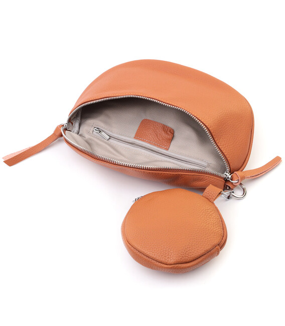 Модна сумка через плече з натуральної шкіри флотар, яка невибаглива у догляді та довго носиться. Аксесуар складається з основного відділення, кишені на блискавці всередині, а також міні-гаманця, що знімається. Носити сумку можна на плечі і через плече, для цього є текстильний ремінь, що знімається. В аксесуарі використано якісну фурнітуру кольору срібла.