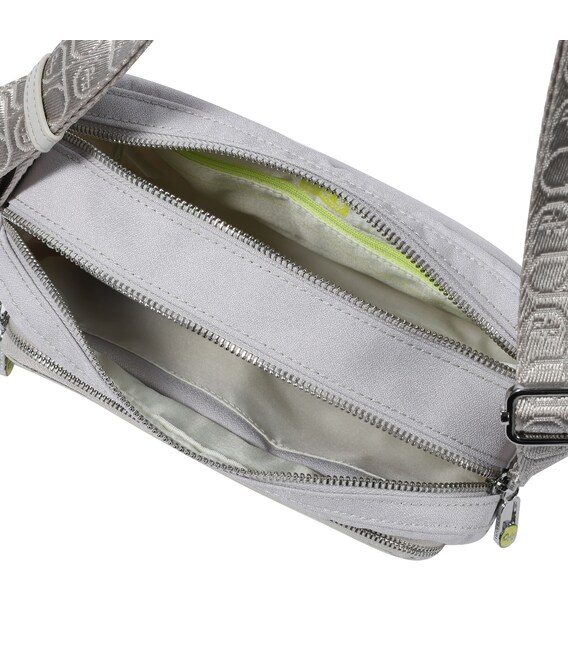 Всіма улюблена модель сумки-кросовер, середнього розміру. Оснащена двома основними відділами на блискавці, де в одному з присутня додаткова кишеня з RFID-захистом та гачок для ключів. Зовні, також, оснащена не великими кишенями, на передній та задній сторонах + вишукана знімна вішалка для ключів. Також, додатково, в комплекті знімна косметичка. Виріб виконаний зі 100% переробленого поліестеру PET (поліефірна тканина з перероблених пластикових пляшок).