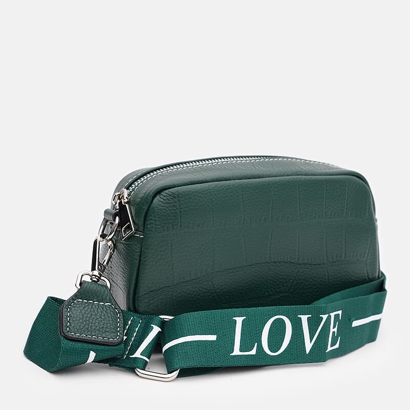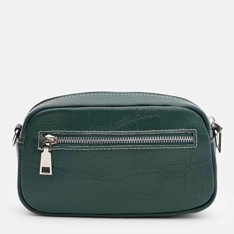 Жіноча шкіряна сумка має 1 відділення на блискавці, всередині 1 кишеню. Зовні є одна кишеня. Підкладка з текстилю. Знімний плечовий ремінь регулюється по довжині.