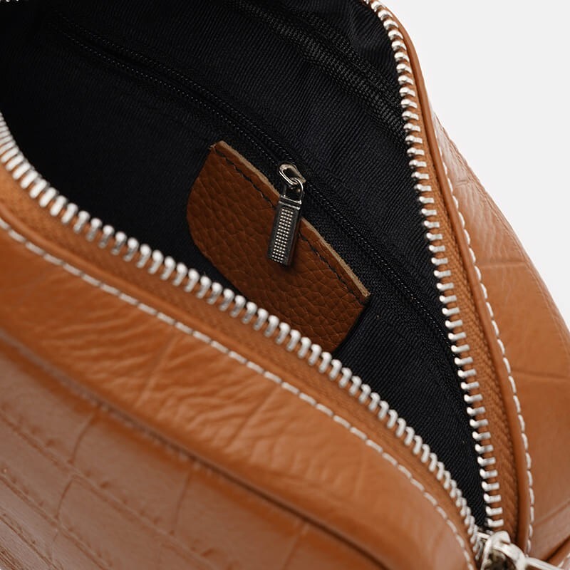 Жіноча шкіряна сумка має 1 відділення на блискавці, всередині 1 кишеню. Зовні є одна кишеня. Підкладка текстилю. Знімний плечовий ремінь регулюється по довжині.