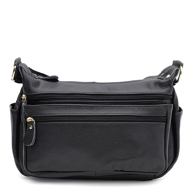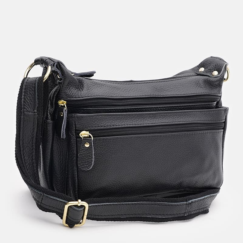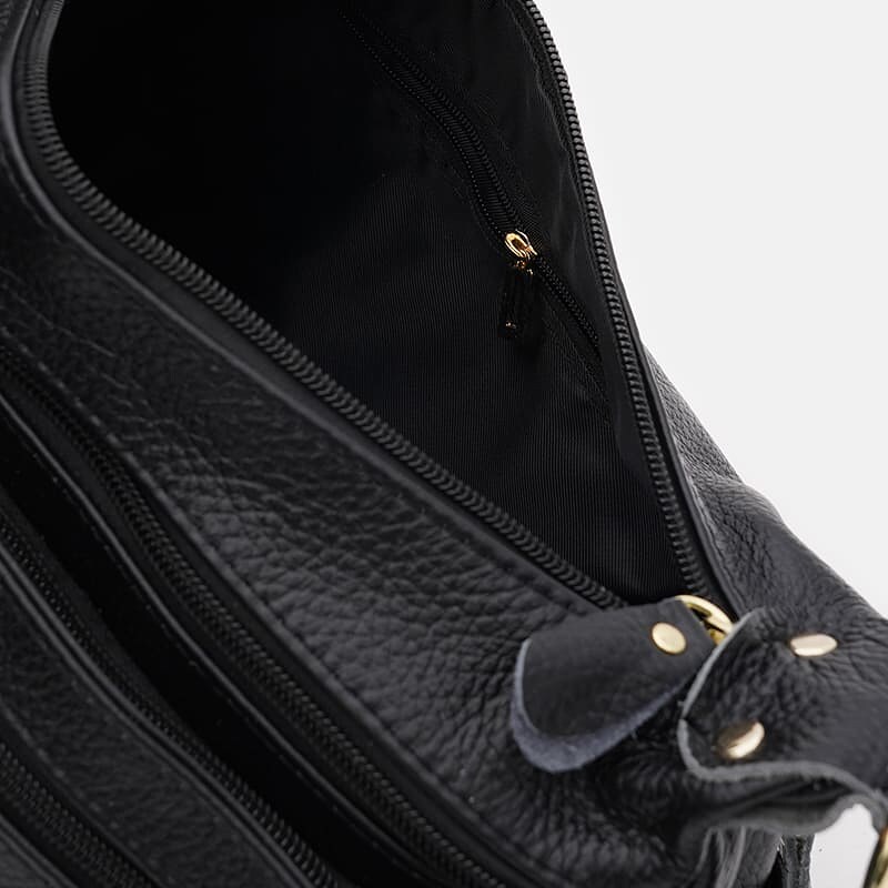 Жіноча шкіряна сумка має 1 відділення на блискавці, всередині 2 кишені. З лицьового боку-3 кишені, з тильною 1 кишеню. Підкладка текстилю. Незнімний плечовий ремінь регулюється по довжині.