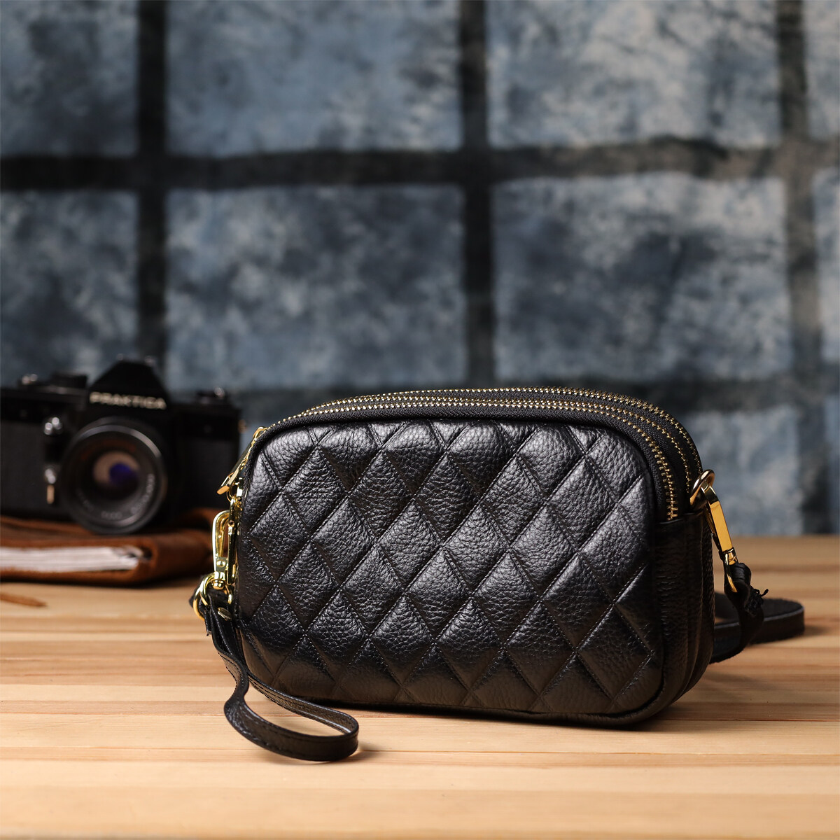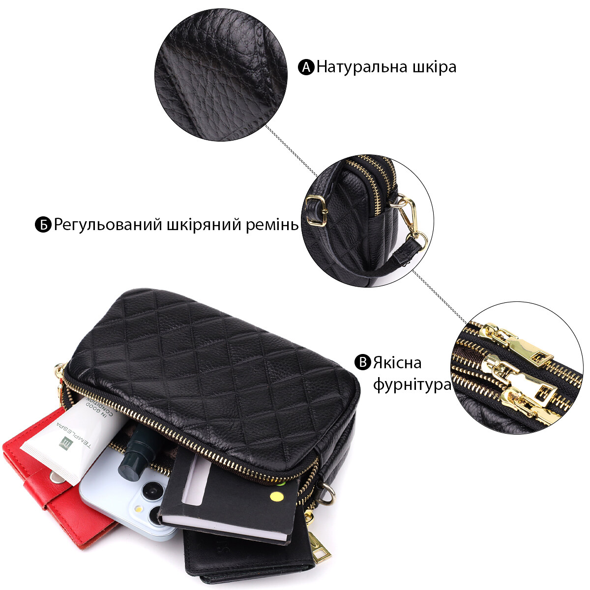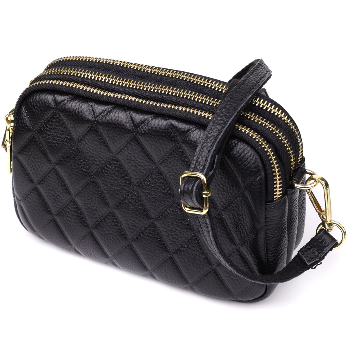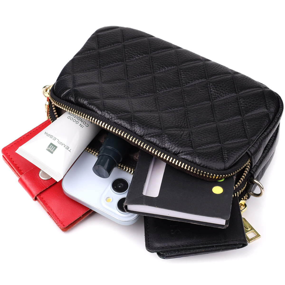 Ця шкіряна стьобана сумка на три відділення - ідеальний вибір для жінок, які цінують комфорт, порядок та бездоганний зовнішній вигляд у кожному образі.