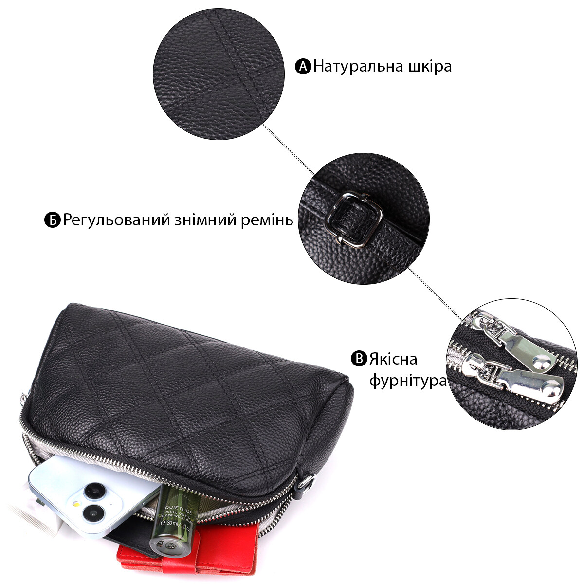 Стильна фурнітура сріблястого кольору гармонійно підкреслює сучасний дизайн виробу. Знімний шкіряний ремінь дозволяє носити сумку як на плечі, так і через плече, забезпечуючи комфорт у повсякденному носінні.