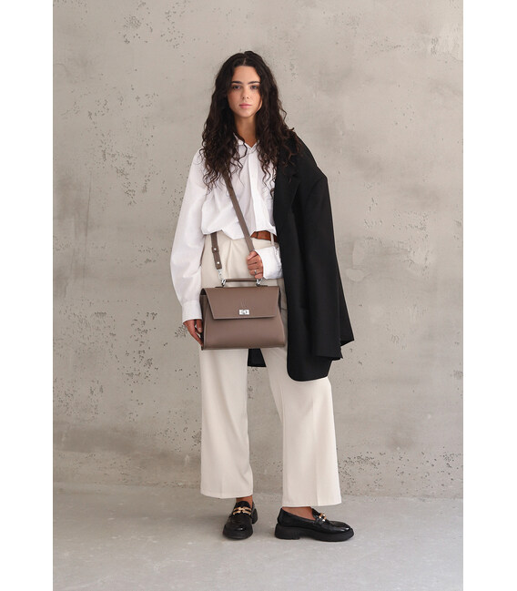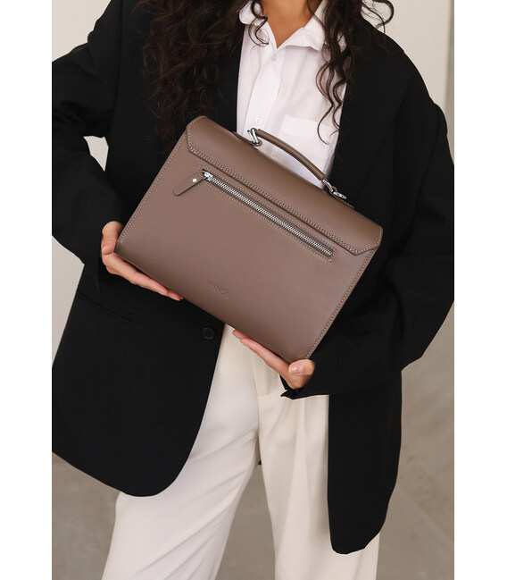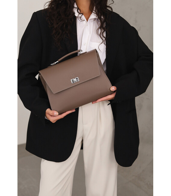 Класична шкіряна сумка — це поза часом. Вона завжди доречна, завжди елегантна і завжди підкреслює смак своєї власниці. Темно-бежевий колір додає образу стриманої вишуканості, а лаконічний дизайн поєднує у собі стиль і практичність. Продумана організація внутрішнього простору дозволяє розмістити всі необхідні речі, зберігаючи порядок і комфорт у повсякденних справах.