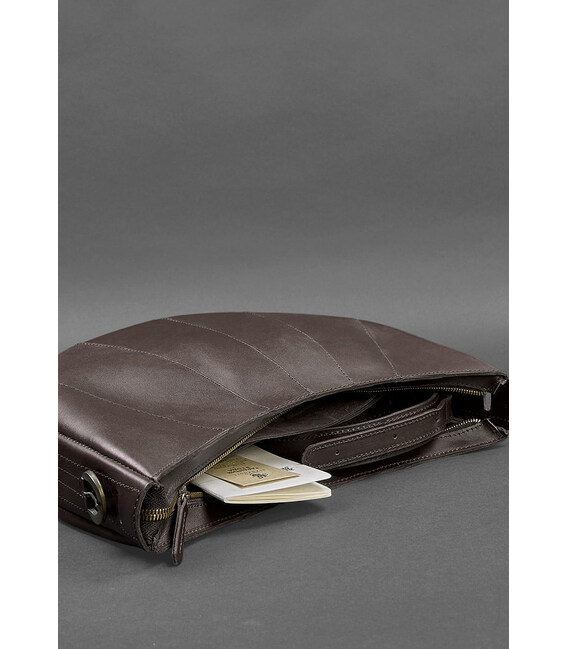 Завдяки зручній формі та продуманій конструкції, жіноча сумка Круасан темно-коричнева легко поєднується з повсякденним гардеробом у стилі casual та smart casual.