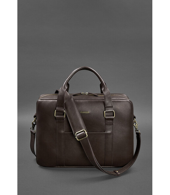 Шкіряна сумка для ноутбука та документів темно-коричнева