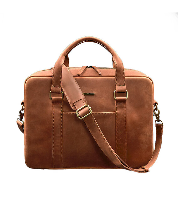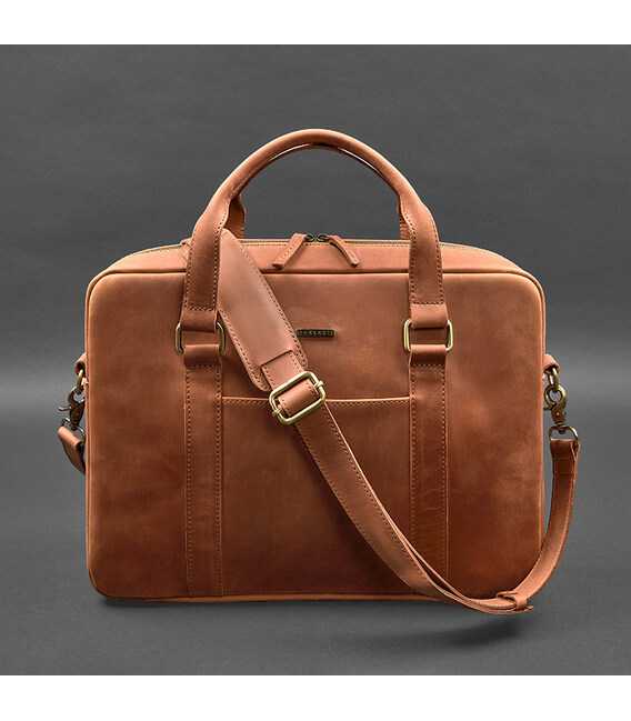Шкіряна сумка для ноутбука та документів світло-коричнева Crazy Horse
