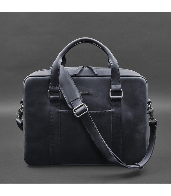 Шкіряна сумка для ноутбука та документів синя Crazy Horse