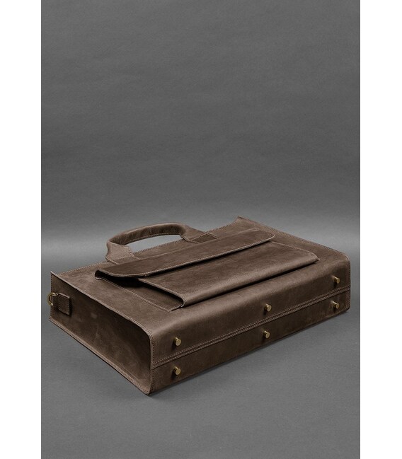 Шкіряна сумка для ноутбука та документів Універсальна темно-коричнева Crazy Horse