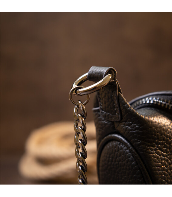 Компактна сумка в класичному і найпопулярнішому чорному кольорі в шкірі типу флотар, яка невибаглива в догляді і довго носиться. Аксесуар має дві ручки - ланцюжок коротше і шкіряну ручку на плече. Виріб тримає форму і замінить вам вечірню сумку на дискотеку, а також ідеально підійде в якості маленької сумочки на кожен день. До цієї сумку ви помістете всі найнеобхідніші особисті речі. Сумки виглядає дуже презентабельно і стильно. Аксесуар стане прекрасним подарунком для ваших близьких.