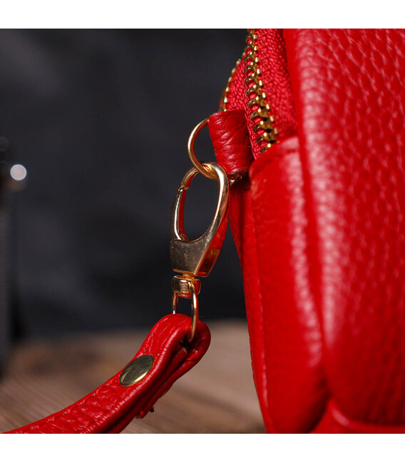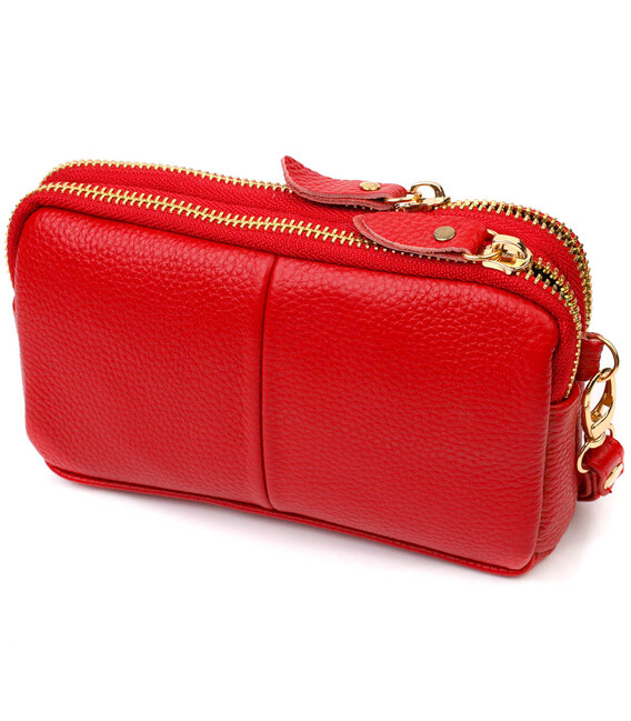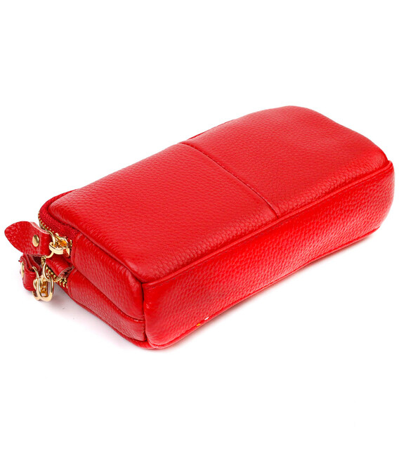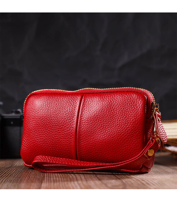 Яскрава жіноча сумочка-клатч із натуральної м'якої шкіри високої якості. Виріб дуже зручний, можна носити в руці та на зап'ясті, відмінний варіант для любителів невеликих сумок. Модель доповнена фурнітурою золотистого кольору. Аксесуар має два основні відділення у яких по кишеньці - на блискавці та відкритого типу. Закривається клатч на блискавку.